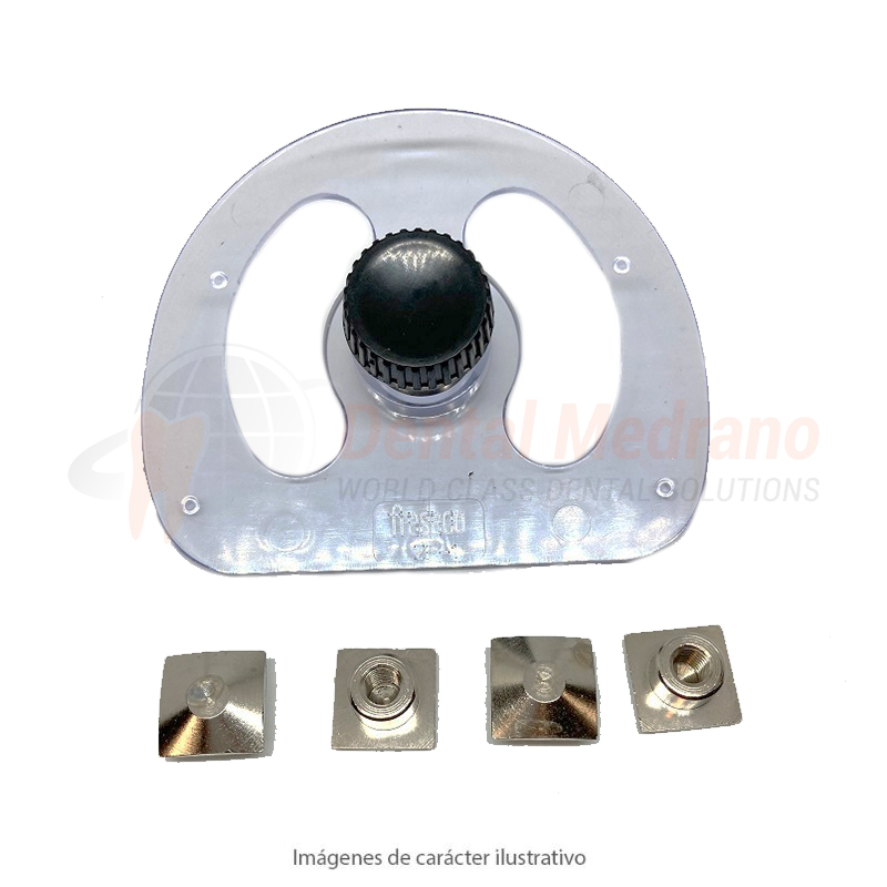 ESTA PLACA SE UTILIZA SOBRE EL FORMADOR DE MODELO 7220 CENTRANDO LA TUERCA DENTRO DEL MODELO DE YESO PARA PODER SER MONTADO EN ARTICULADOR O EN LA CABEZA FRASACO.